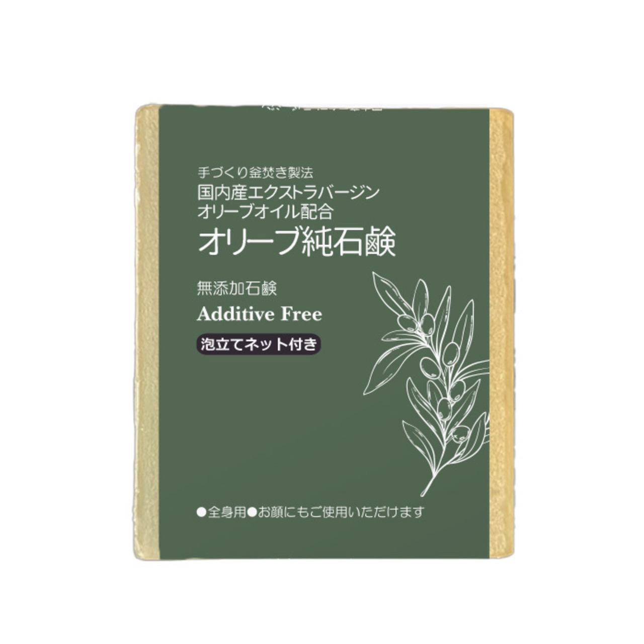 手づくり釜焚き無添加石鹸 オリーブ純石鹸 国内産エクストラバージンオリーブオイル配合 オリーブオイルの主成分オレイン酸がお肌をしっとりに!