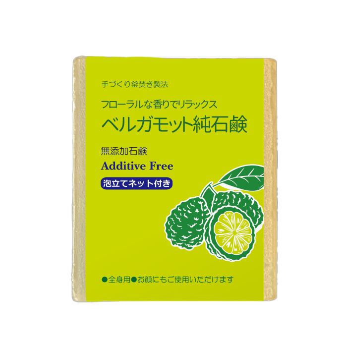 手づくり釜焚き無添加石鹸 ベルガモット純石鹸 フローラルな香りでリラックス お肌の炎症を抑えるなどお肌トラブルにおススメ!